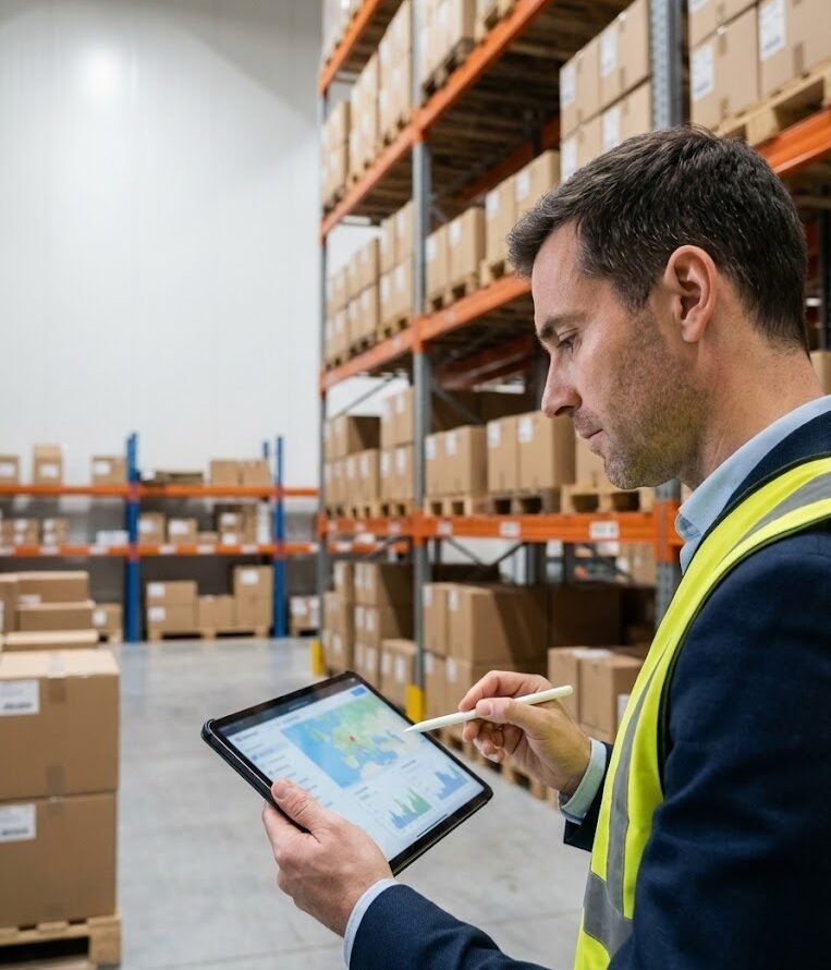 Operação de armazenagem, separação e entregas com rastreio por unidade e relatórios periódicos.